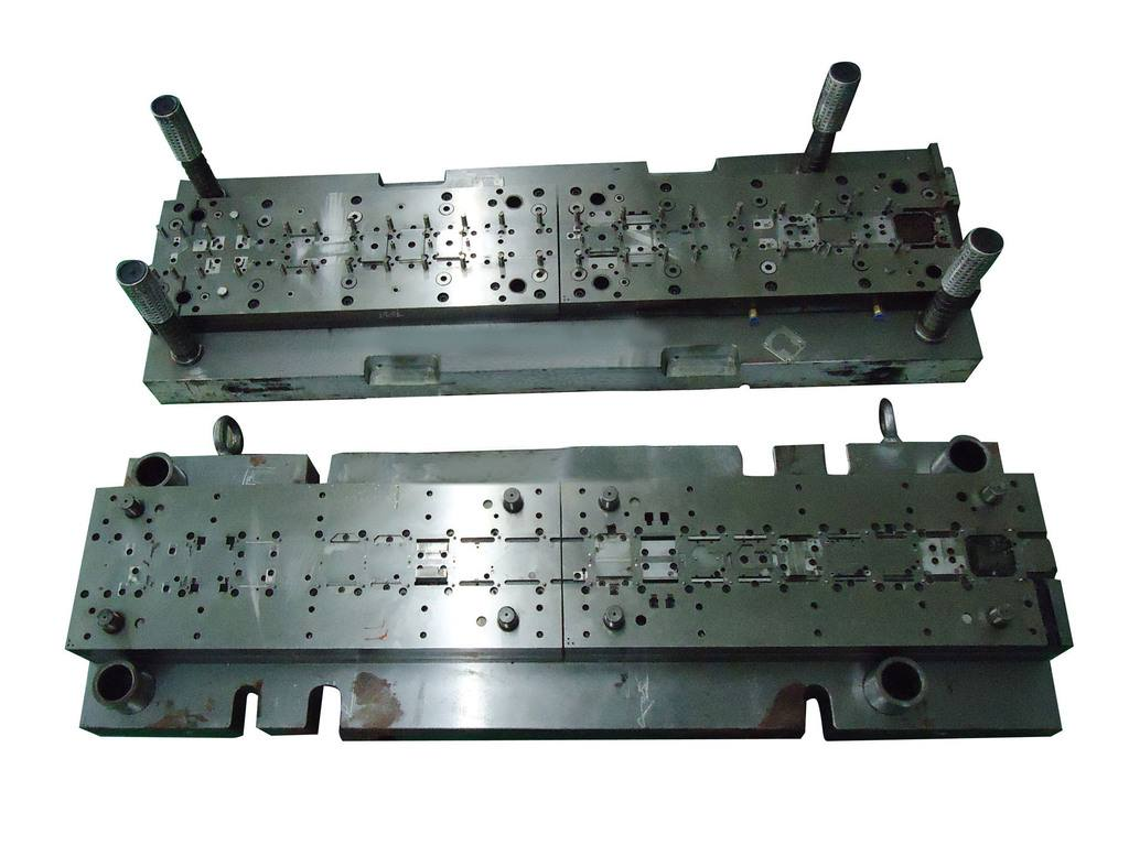 對策:a、.解決跳屑、屑料阻塞、卡模等問題; b、注意送(sòng)料,及時(shí)修(xiū)剪料帶,及時清(qīng)理模具;c、修(xiū)改設(shè)計,增加凸(tū)模整體強度,減短凹模直刃部尺寸,注意凸模刃部端麵修(xiū)出斜度或弧形,細小部後切(qiē);d、小凸模長度磨短相對大凸模一個料厚以上;e、修(xiū)改設計;f、控(kòng)製凸凹模加工精度或修改設計間隙,細小部衝切間隙適當(dāng)加大;g、調整衝壓油滴油量(liàng)或更換油種;h、檢查各成形件精度,並施以調整或更(gèng)換,控製加工精度;i、研修或更換;j、更換導柱、導套,注意日常保養;k、更換使用材質,使用合適硬度;i、更換導料件; m、修正,墊(diàn)片數盡可少,且使用鋼墊,凹模下墊片需墊在墊塊下麵。
