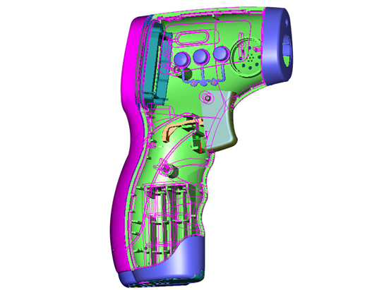 在體溫(wēn)槍外殼塑膠製品的諸(zhū)多製造(zào)工藝中(zhōng),最(zuì)主要的(de)就是注塑成(chéng)型,而在注塑成(chéng)型工藝中,最關(guān)鍵、最核心的(de)部(bù)分就是體溫槍塑膠模具的設計和開發。
